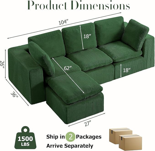 #A01 Green L-Shaped Couch Modular Sectional Sofa,3 Seat Comfy Cloud Co